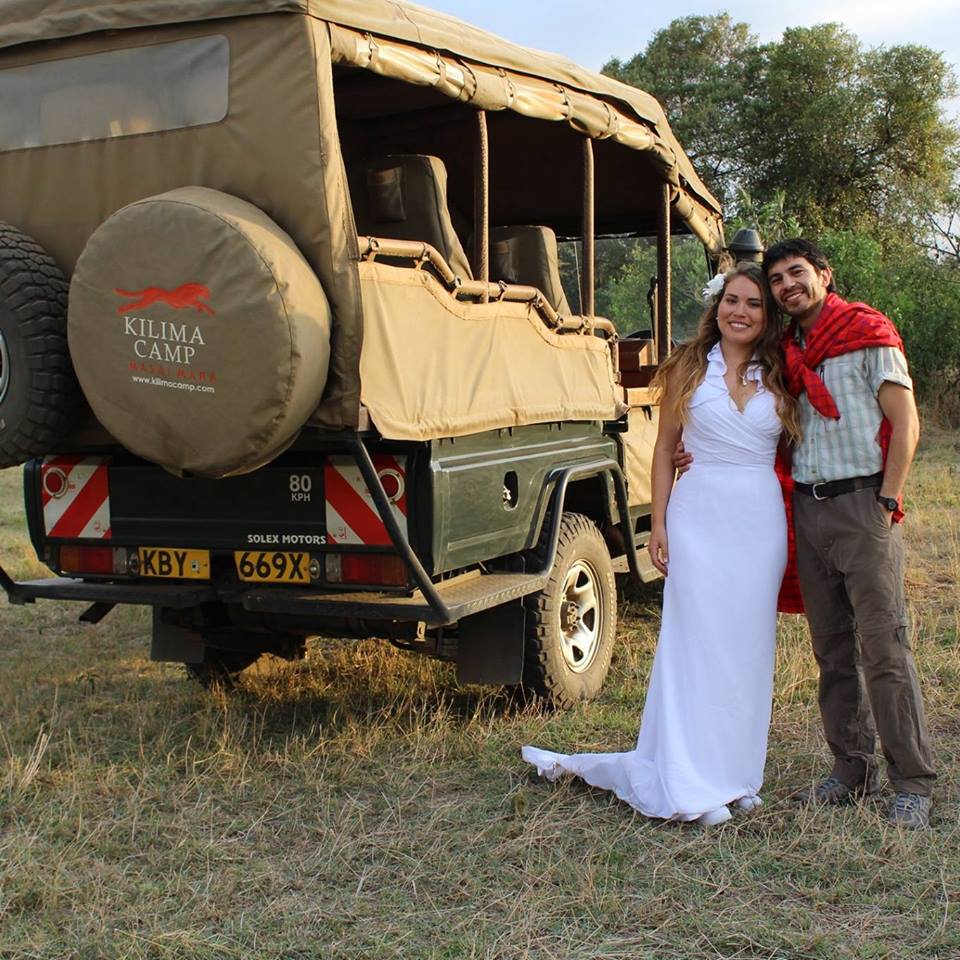 Primero nos casamos en una tribu en la ONG donde trabajamos y luego en el hotel Kilima Camp (recomendable al 100%). Este hotel es para sentirse en la película «Out of Africa» con Meryl Streep. Dedicamos 4 días en este hotel para hacer safari y casarnos para luego tomar una avioneta a Nairobi con una vista increíble a la Sabana.
